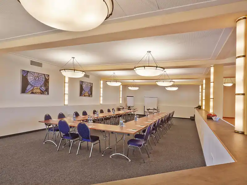 Lage: 3 Etage im Haupthaus mit Blick in den Garten. Zusammen mit dem Tagungsraum Freudenstadt bildet der Raum das Schwarzwald-Center als abgeschlossenem Tagungsbereich mit eigenem Pausenbuffet, Kommunikationszone und WC. Schnellem WLAN mit 2,4Mhz und 5Mhz.