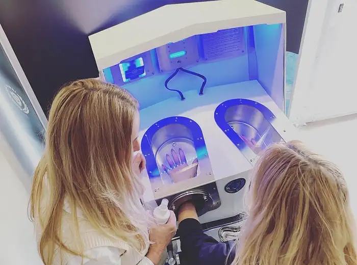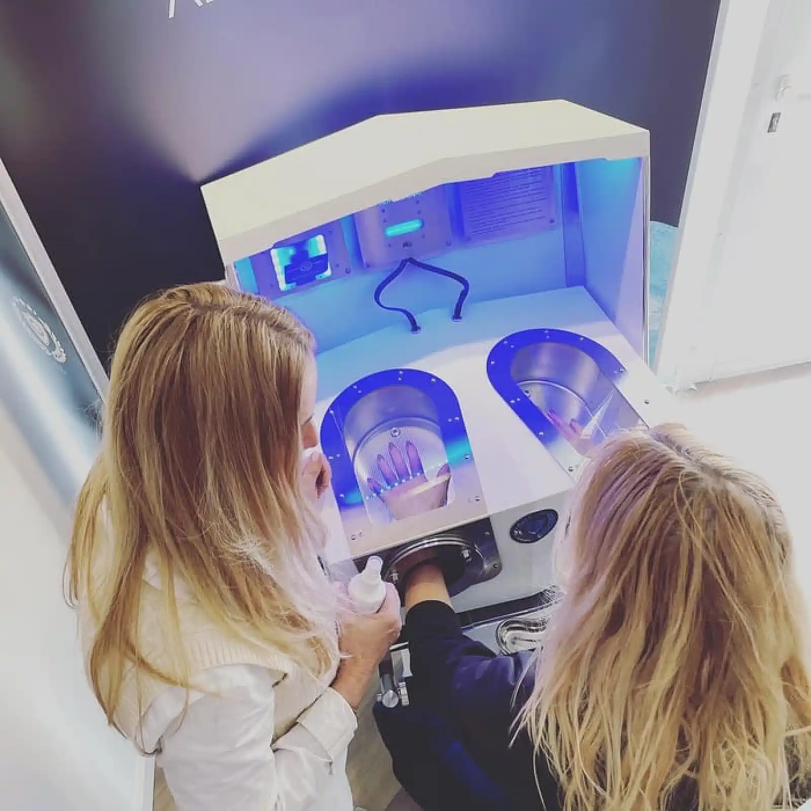 Zur Regeneration und für's Wohlbefinden werden die Hände für 2 Minuten mit Alpha Cooling® Professional dem sanften Unterdruck ausgesetzt und herabgekühlt. Für die intensivere Anwendung empfehlen wir einen ersten Probetermin von 5x2 Minuten.