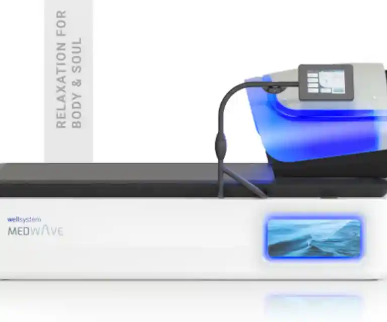 Die Überwasser-Massage von Wellsystem Clinic ist ein Medizinprodukt der Klasse IIa und nutzt Wärme und Wasserkraft für eine therapeutische Ganz- und Teilkörpermassage. Warme Wasserstrahlen treffen in gleichmäßigen Bewegungen auf die Unterseite der weichen Liegefläche und massieren den ganzen Körper von Kopf bis Fuß, während man fast schwerelos auf der trockenen Wasseroberfläche schwebt. Die wohltuende Wärme und die sanfte Kraft des Wassers aktivieren die tieferen Gewebeschichten, lockern die gesamte Muskulatur und lindern Schmerzen.